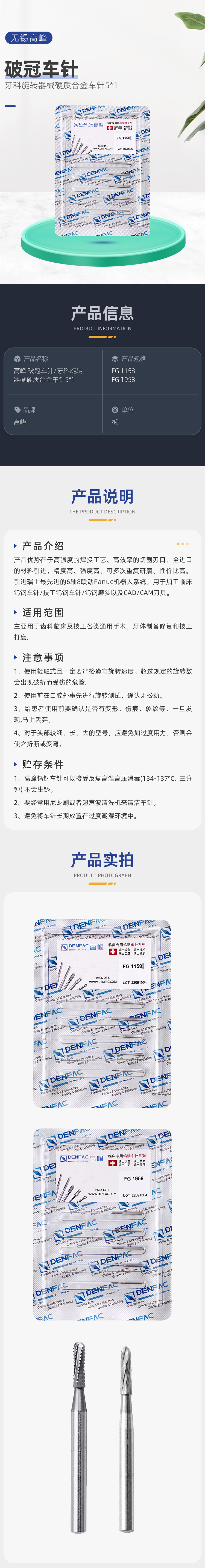 高峰 破冠车针/牙科旋转器械硬质合金车针5*1商品编号:1750008001