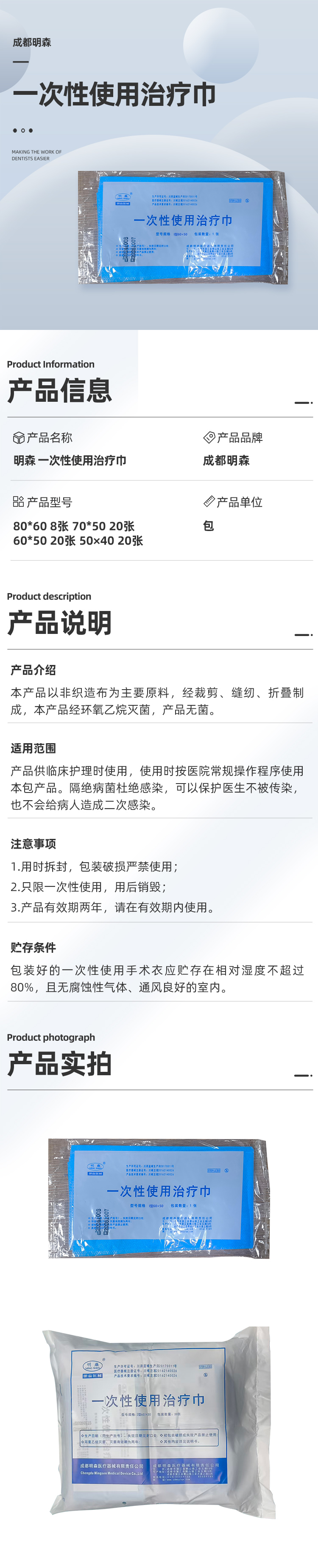 明森 一次性使用治疗巾商品编号:1260001002
