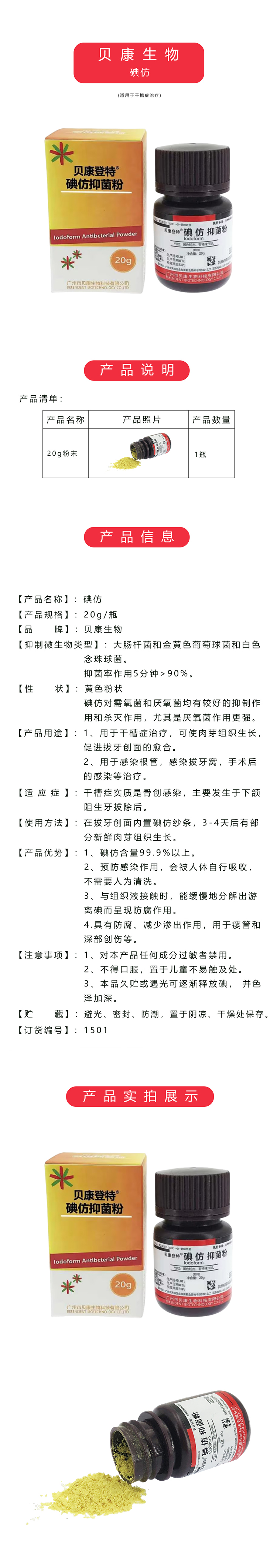 贝康登特® 碘仿抑菌粉(超纯度)20g商品编号:15690007001
