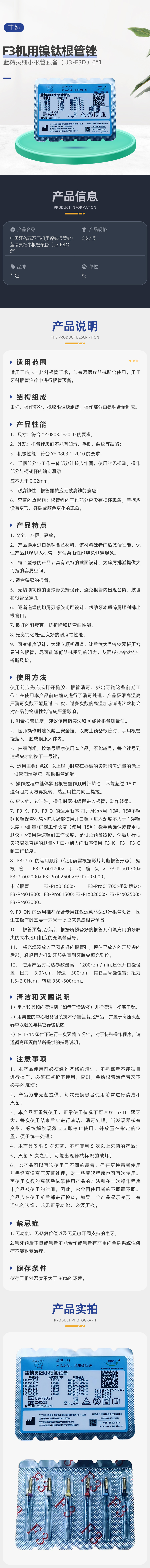 中国牙谷菲娅 F3机用镍钛根管锉/蓝精灵细小根管预备(U3-F3D)6*1商品编号:2920118001 (蓝精灵细小根管预备)