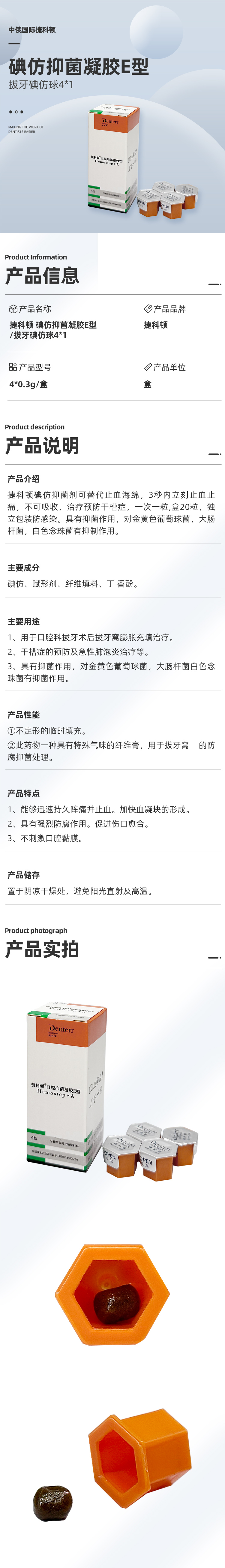 捷科顿 碘仿抑菌凝胶E型/拔牙碘仿球4*1商品编号:4490003002