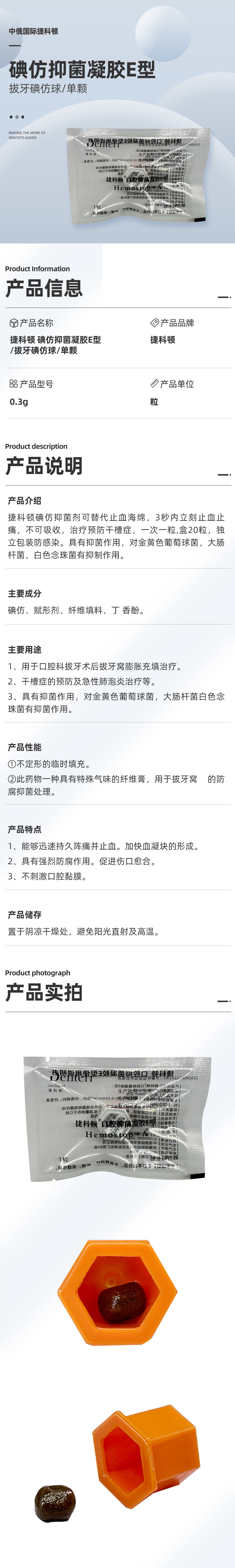 捷科顿 碘仿抑菌凝胶E型/拔牙碘仿球(单颗装)商品编号:4490003003